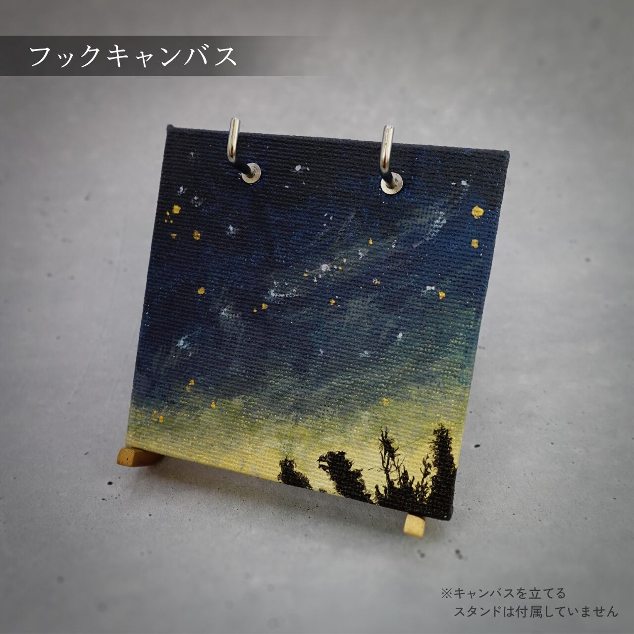 手のひらサイズのフック付きキャンバスに掛けて